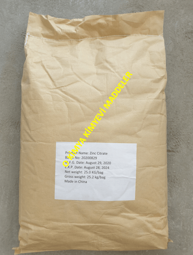 Molekül Formülü (Çinko Sitrat): C12H10O14Zn3
